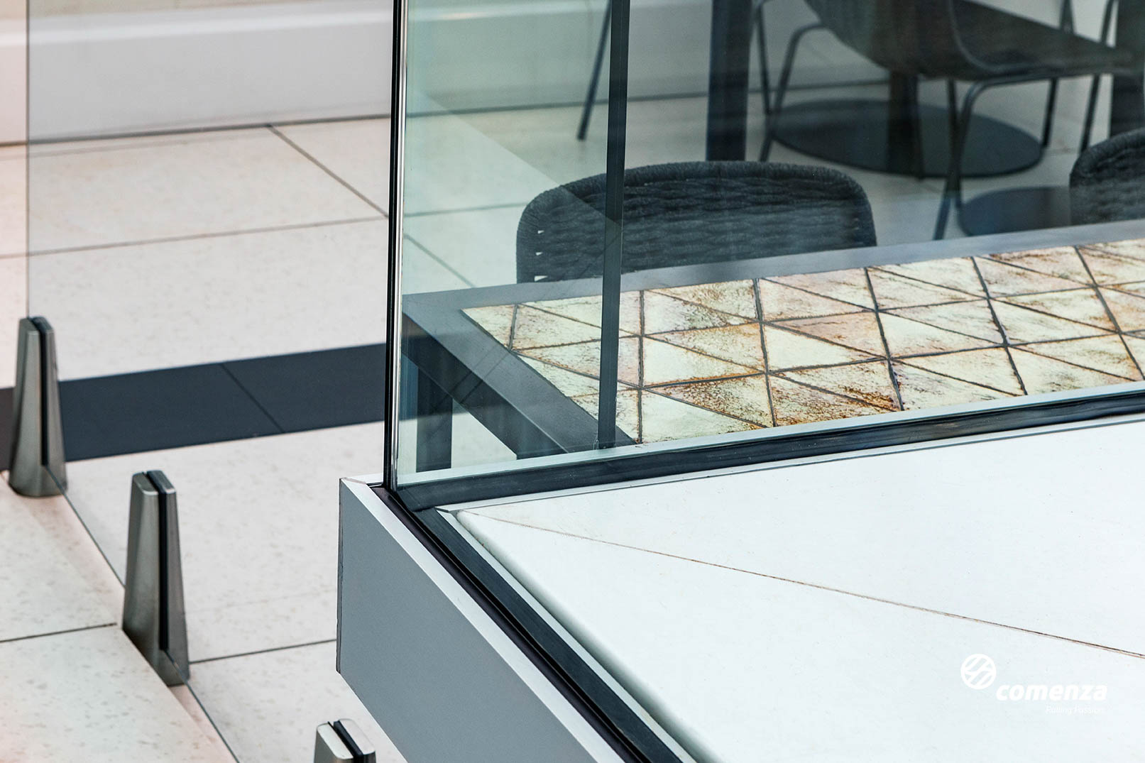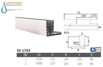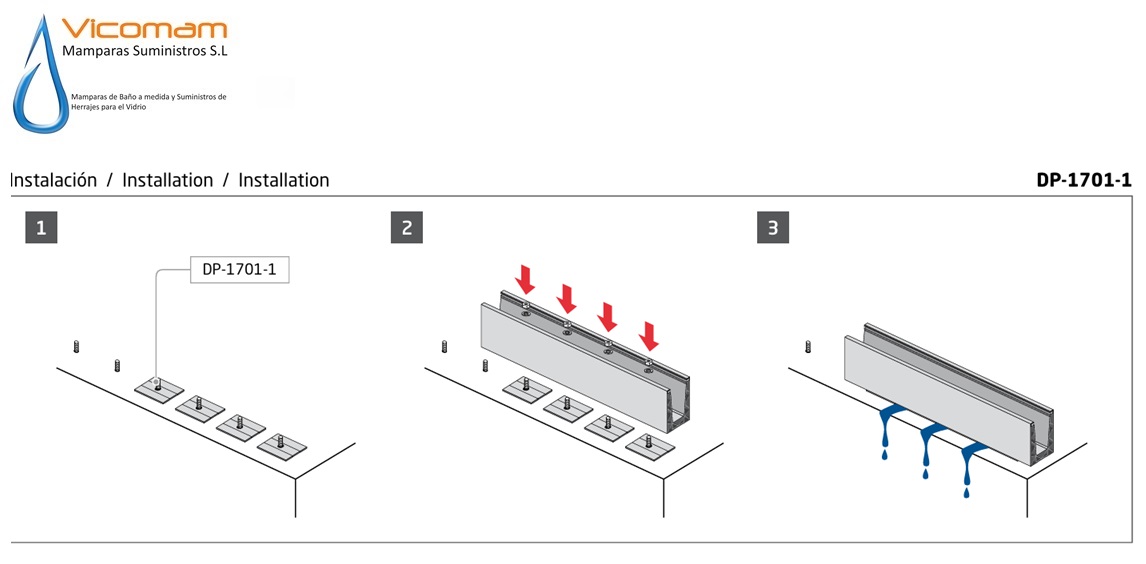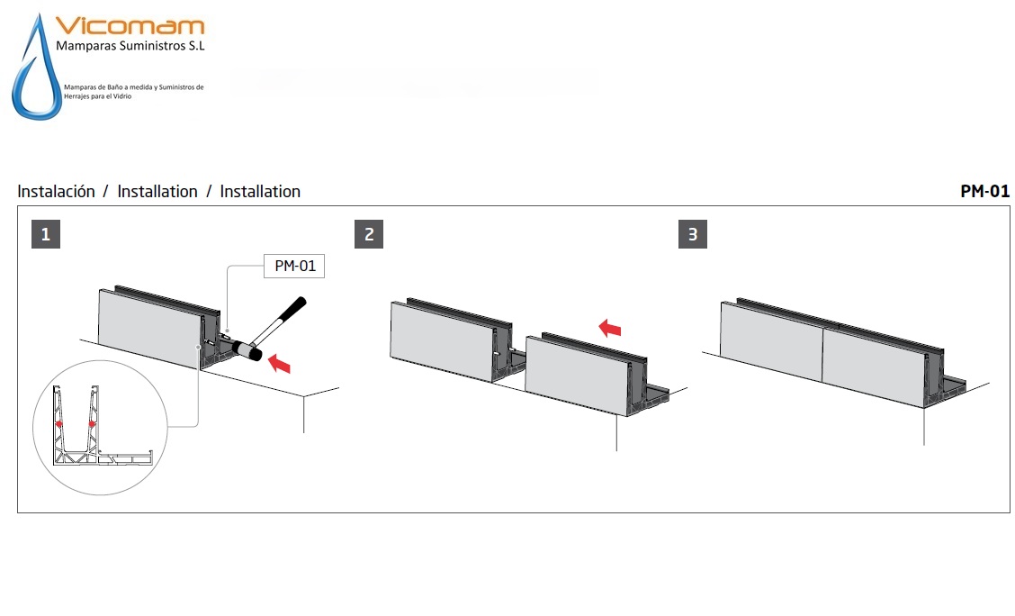 MS7003 PERFIL "U" PARA BARANDA DE VIDRIO FIJACION A SUELO+ KIT DE CUÑAS MANUAL PARA LA SUJECIÓN DEL VIDRIO EN ACABADO ANODIZADO PLATA MATE, PARA OTROS COLORES CONSULTAR.