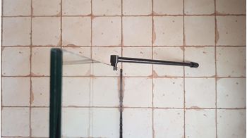 - La barra de refuerzo mampara se instala por encima del canto superior del vidrio, de modo que se libera espacio para el giro de la puerta hacia el interior de la ducha/bañera, así como para otras opciones.