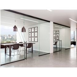 Unikglass+: un perfil de sobrio diseño guía una única hoja móvil de vidrio. Puede esconderse en falso techo para un efecto absolutamente minimalista. Es un sistema libre de marco y sin barrera arquitectónica en el pavimento. Permite un montaje fácil, totalmente intuitivo.
