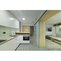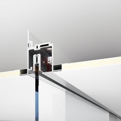 Unikglass +: un perfil de sobrio diseño guía una única hoja móvil de vidrio. Puede esconderse en falso techo para un efecto absolutamente minimalista. Es un sistema libre de marco y sin barrera arquitectónica en el pavimento. Permite un montaje fácil, totalmente intuitivo.